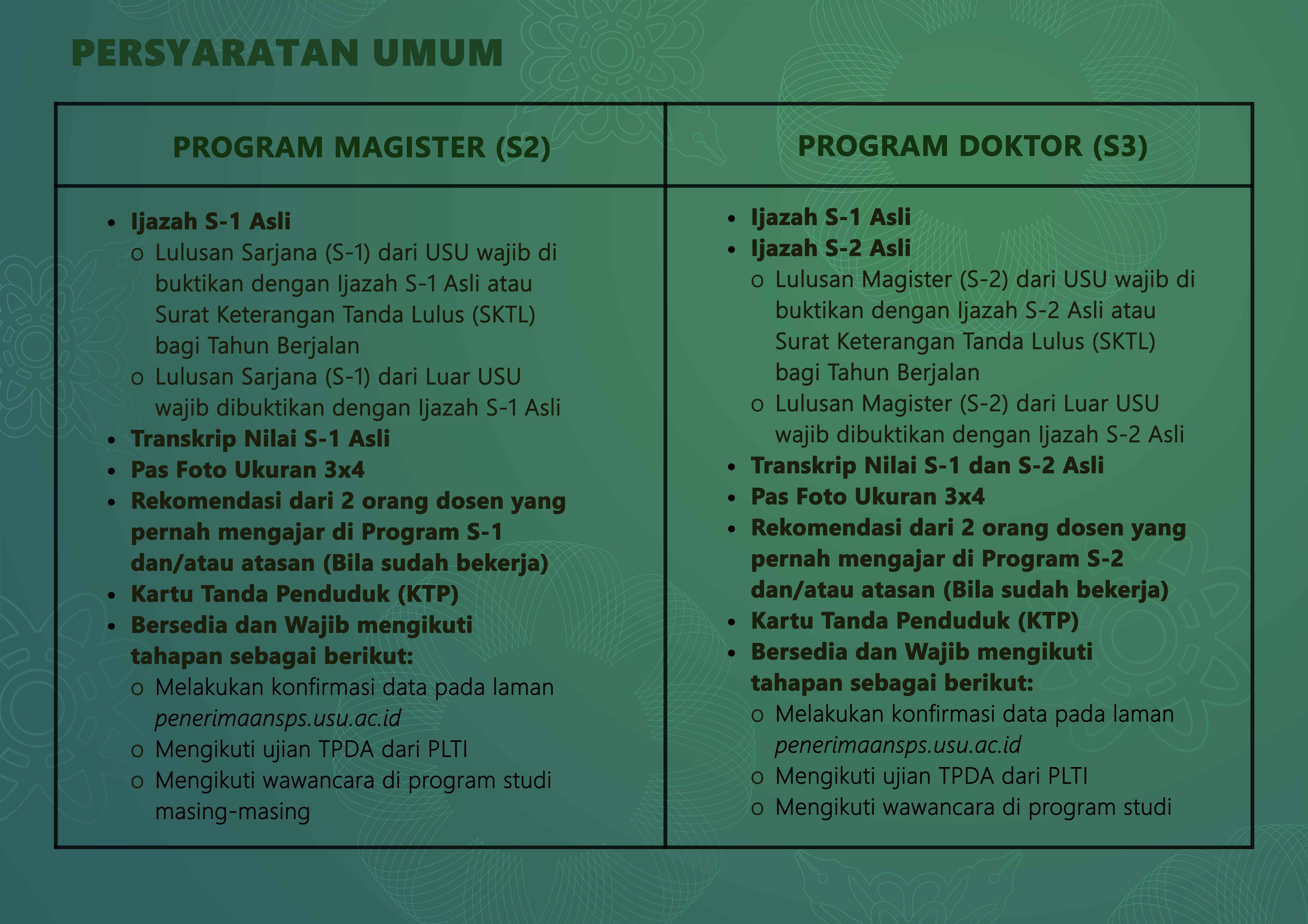 Persyaratan Umum Penerimaaan Mahasiswa Baru Program Magister (S-2) dan Doktor (S-3) Di Lingkungan Universitas Sumatera Utara